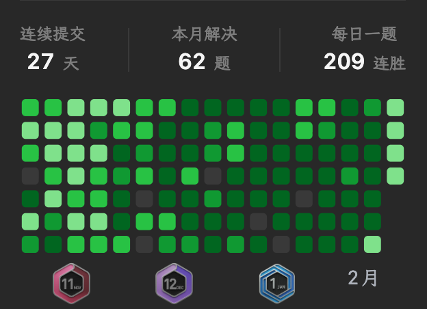 实际上,每日一题也写了209天了.